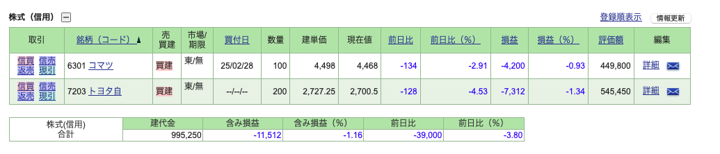 私は、配当権利落ち日にまだ利確をしていない為、今後の相場次第で今度は売買利益を狙っていけると思っている。信用取引なので、そこまで長期で保有し続ける事は出来ないが、長くとも今年中に利確をしたいと考えている。しかし、昨晩の米国株の下落により、日経平均先物は大きく下落している為、来週も下落からスタートする事だろう。